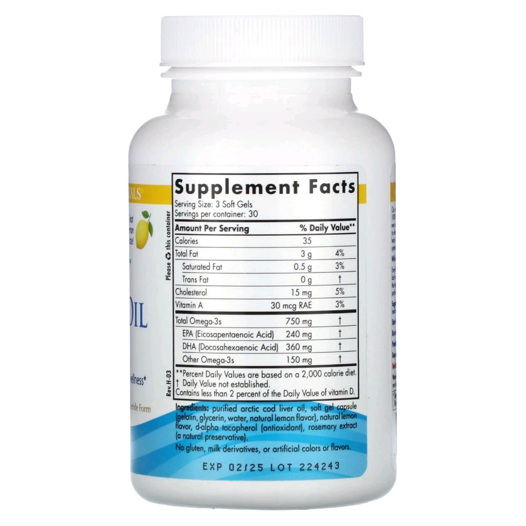 Nordic Naturals, Arctic Cod Liver Oil, Lemon, 750 mg, 90 Soft Gels