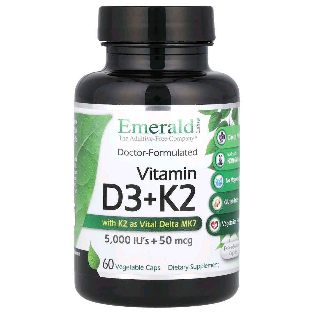 Emerald, Vitamin D3 + K2, 5000 IU + 50 mcg, 2 months supply