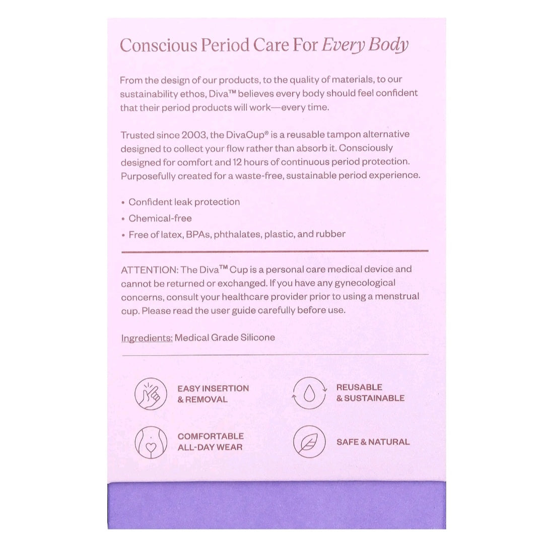 Trusted since 2003, the DivaCup® is a reusable tampon alternative designed to collect your flow rather than absorb it. Consciously designed for comfort and 12 hours of continuous period protection. Purposefully created for a waste-free, sustainable period experience.