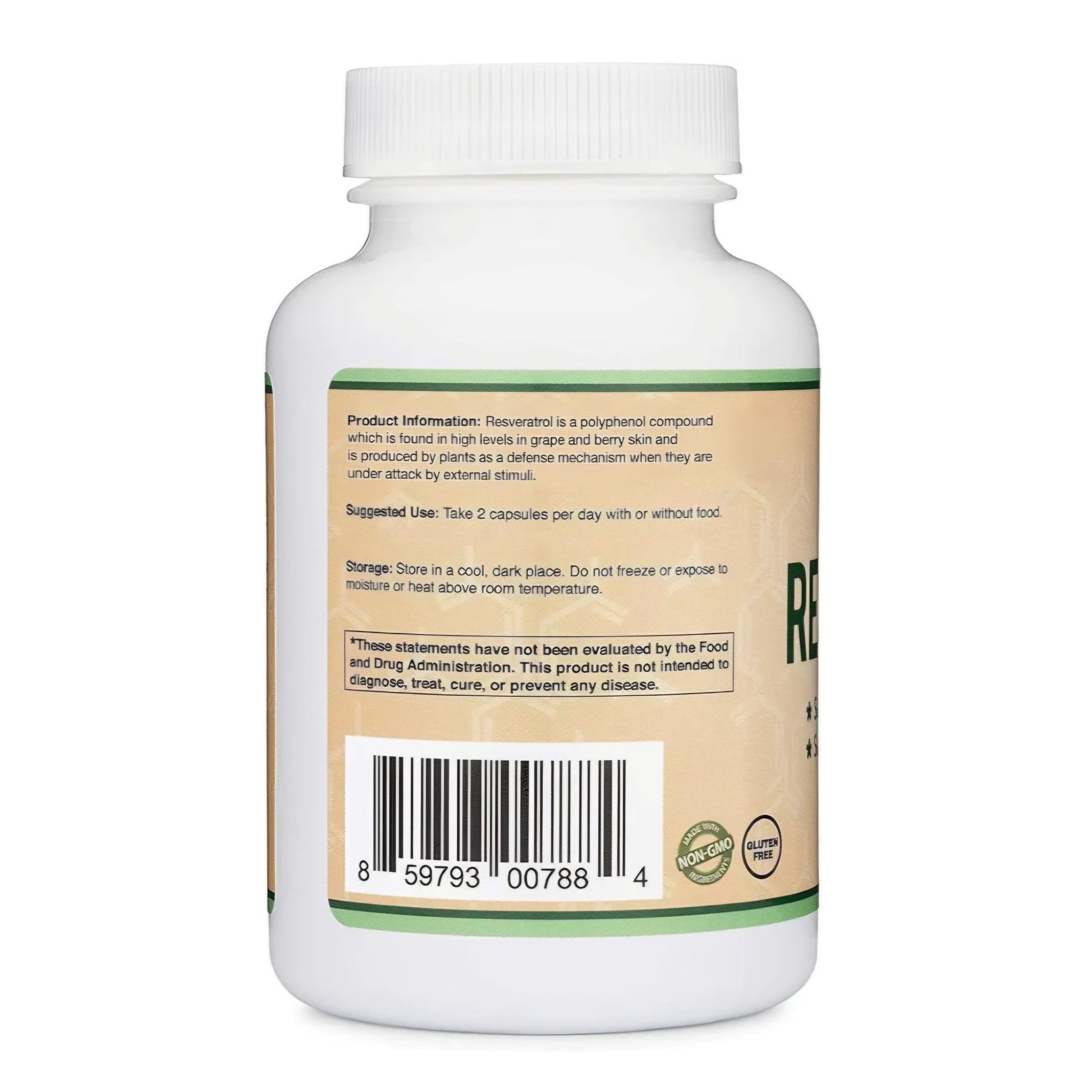 TWO MONTH SUPPLY: Each bottle contains 120 capsules, enough to provide 60 servings of 500mg Resveratrol
