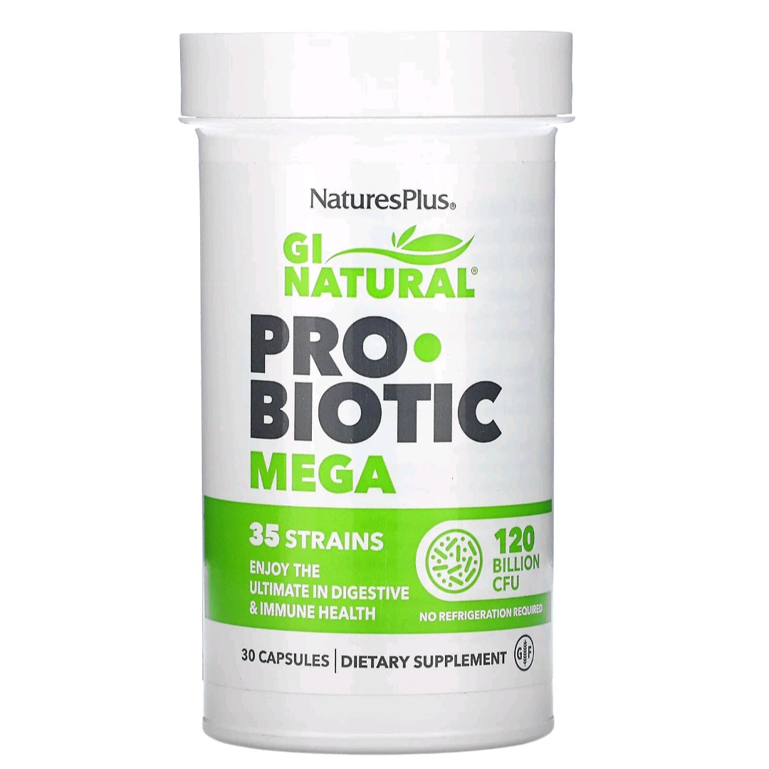 NaturesPlus GI Natural Probiotic Mega provides 120 billion live probiotic bacteria delivered in a carefully formulated blend of 35 uniquely distinct and healthful strains that promote and improve total body wellness and vitality.
