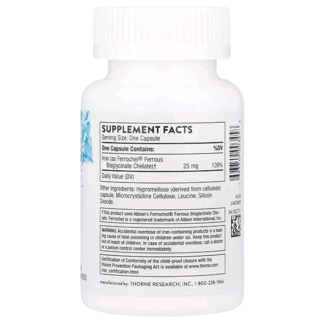 Thorne, Iron Bisglycinate, 25 mg, 60 Capsules