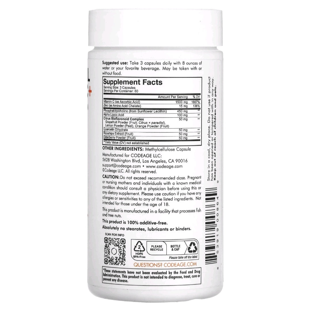 Codeage, Liposomal Vitamin C+, Vitamin C, Quercetin, Rosehips, Zinc, 180 Capsules