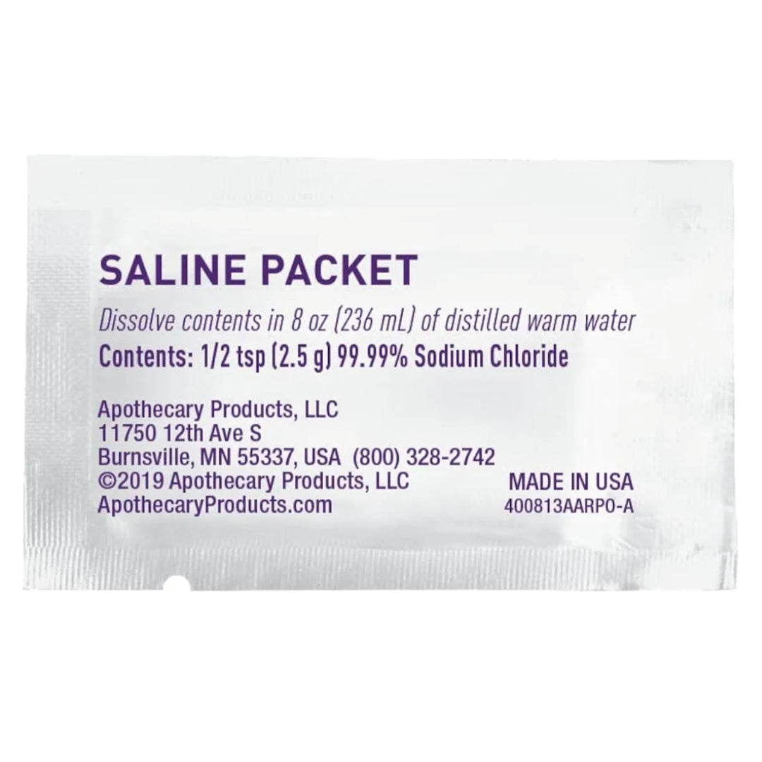 Contains ten (10) 2.5g saline packets (99.99% Sodium Chloride)