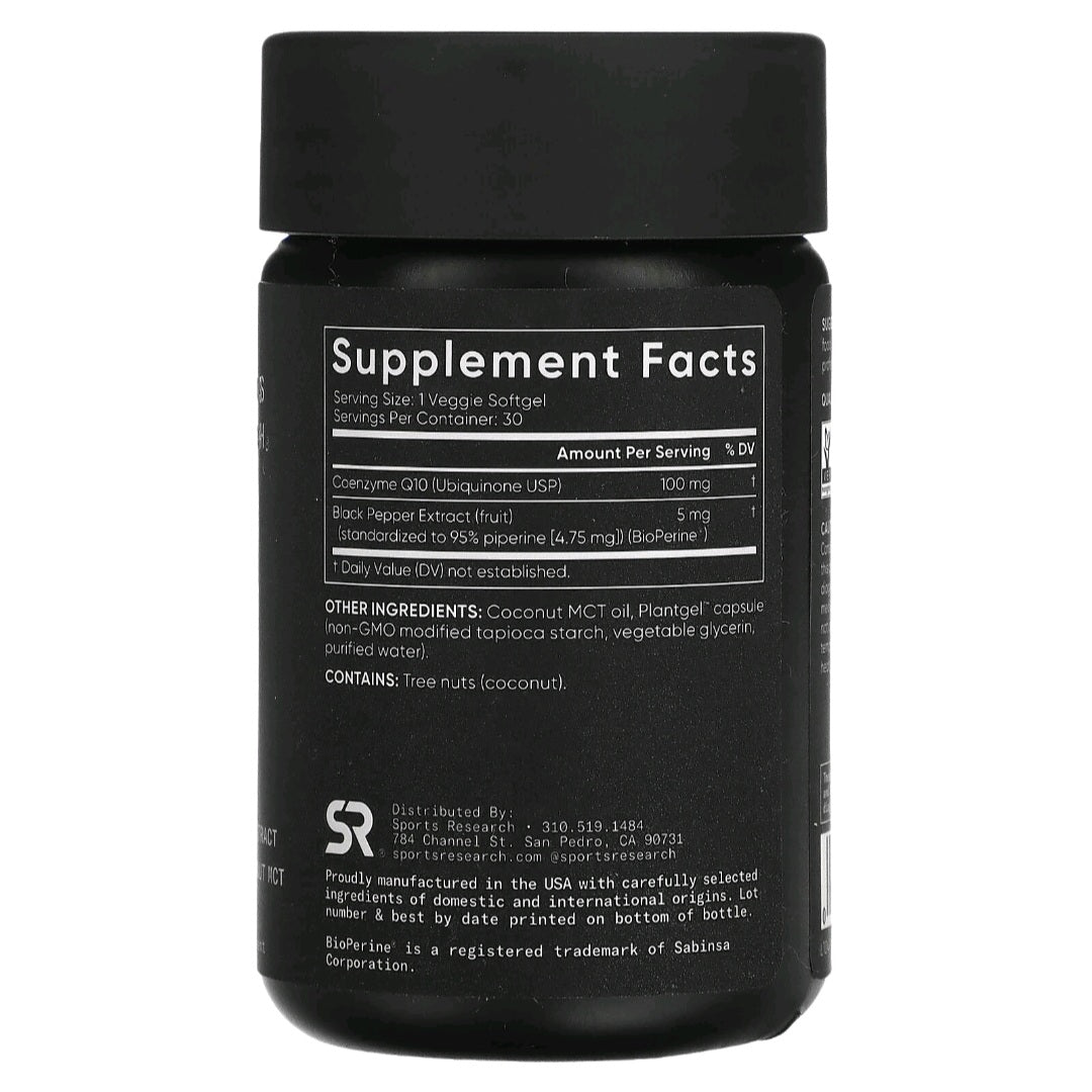 Sports Research, CoQ10, USP Grade with BioPerine, 100 mg, 30 Softgels
