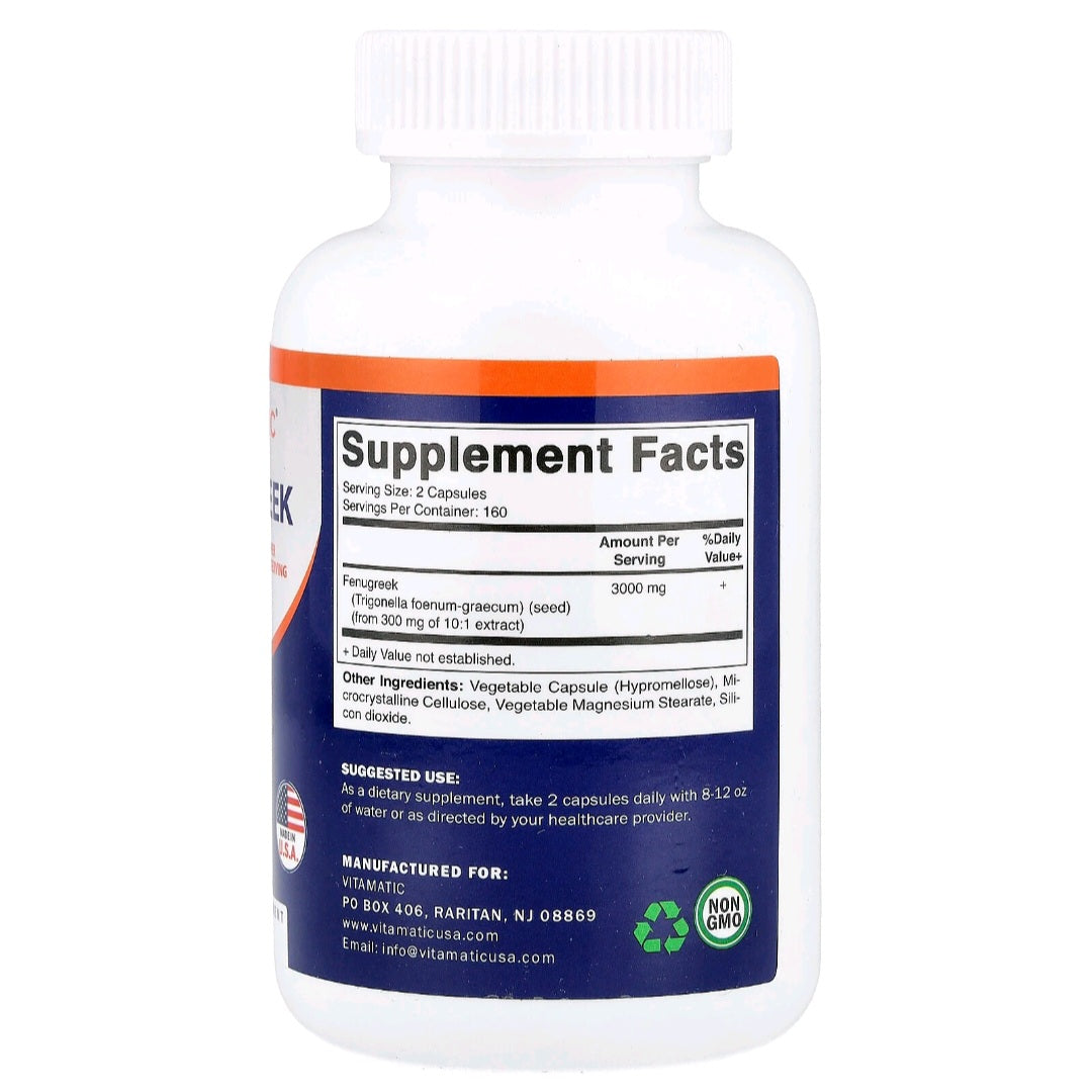 Vitamatic, Fenugreek 320 Capsules (1,500 mg per capsule)